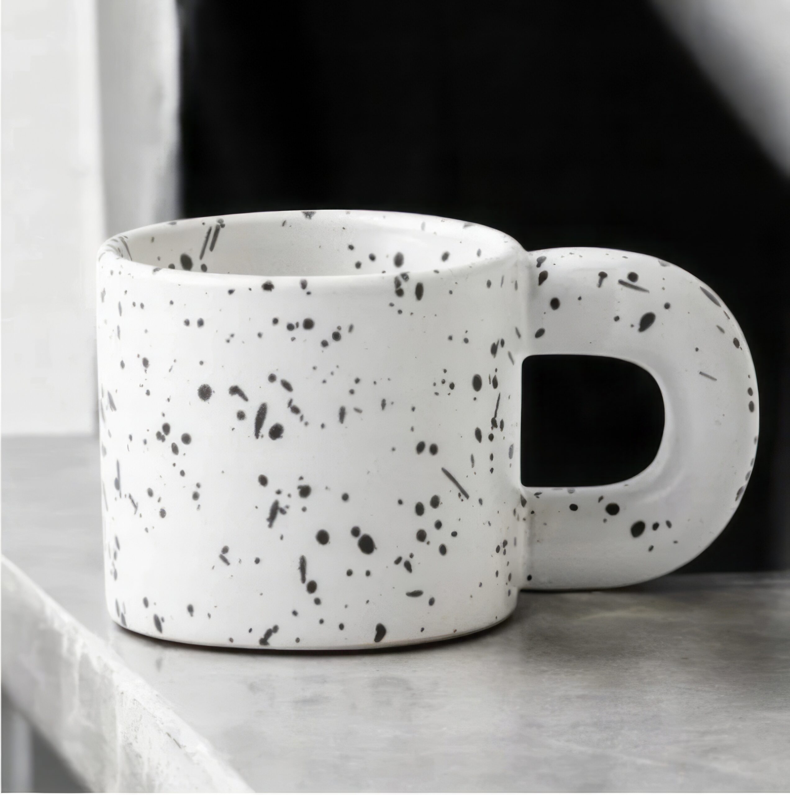 Nasz subtelny, śmietankowy kubek z delikatnymi nakrapianiami kropkami zachwycą każdego, kto ceni prostotę i wyjątkowy design.