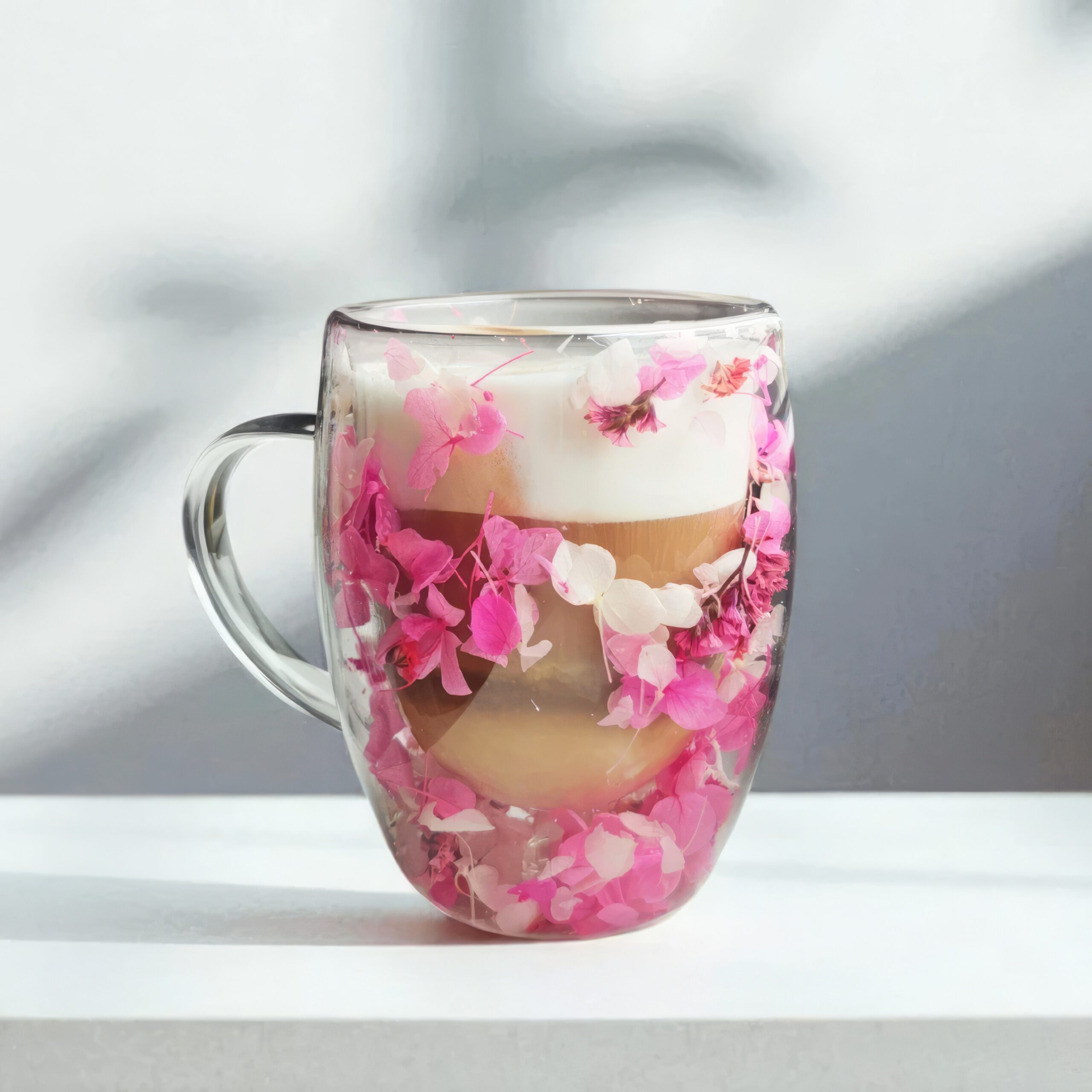Szklanka Termiczna do Kawy Latte z Kwiatami w Środku 180ml