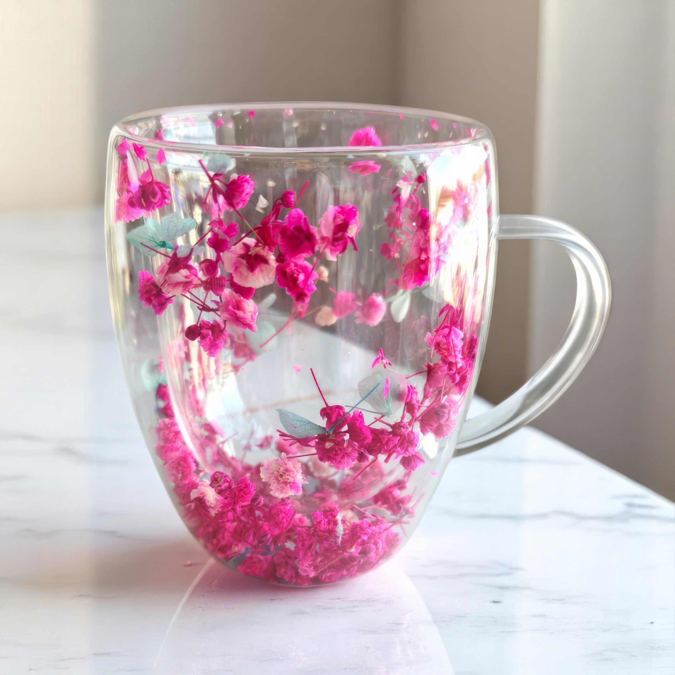 Szklanka do Herbaty Kawy Termiczna z Kwiatami w Środku 300ml