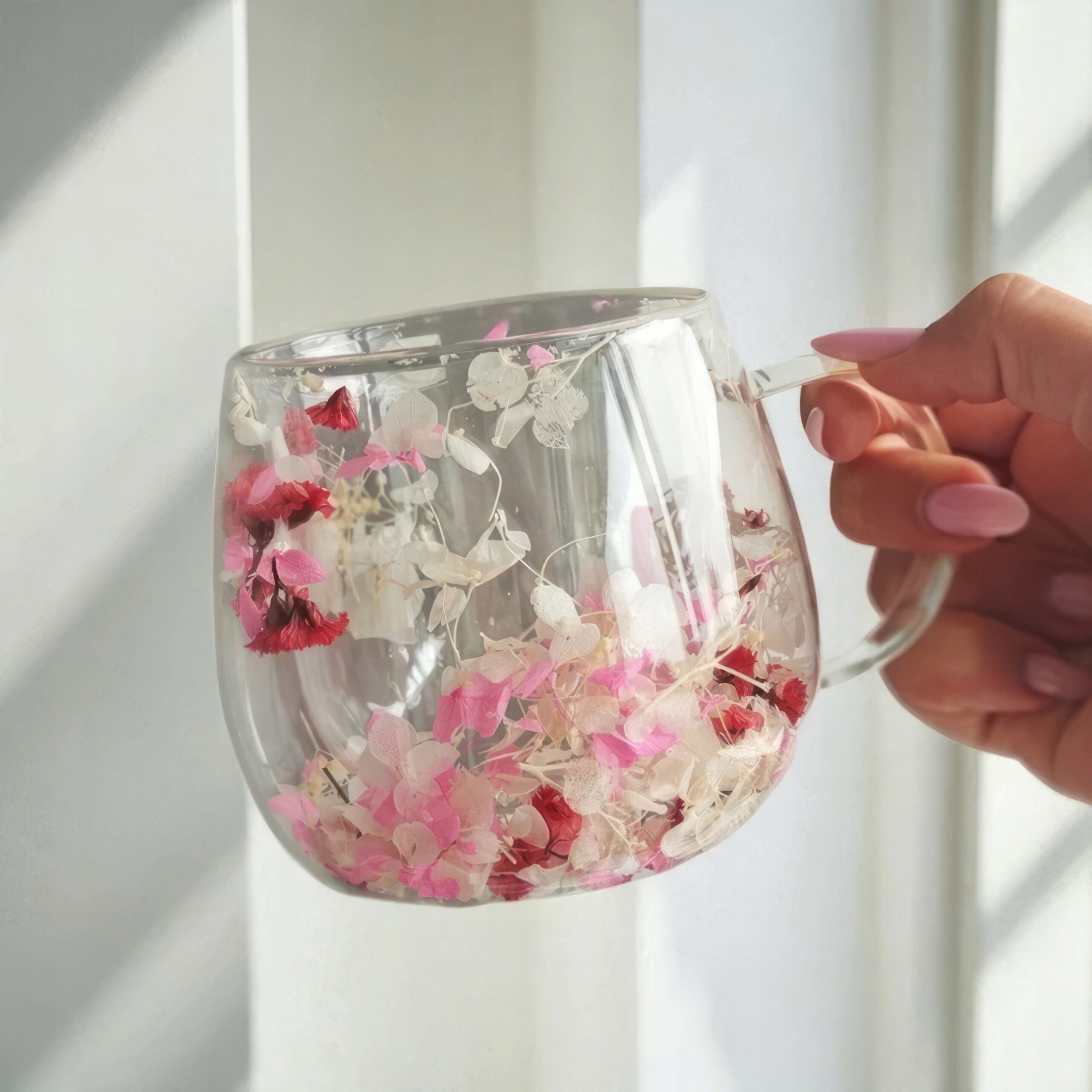 Szklanka do Herbaty Kawy Termiczna z Kwiatami w Środku 300ml
