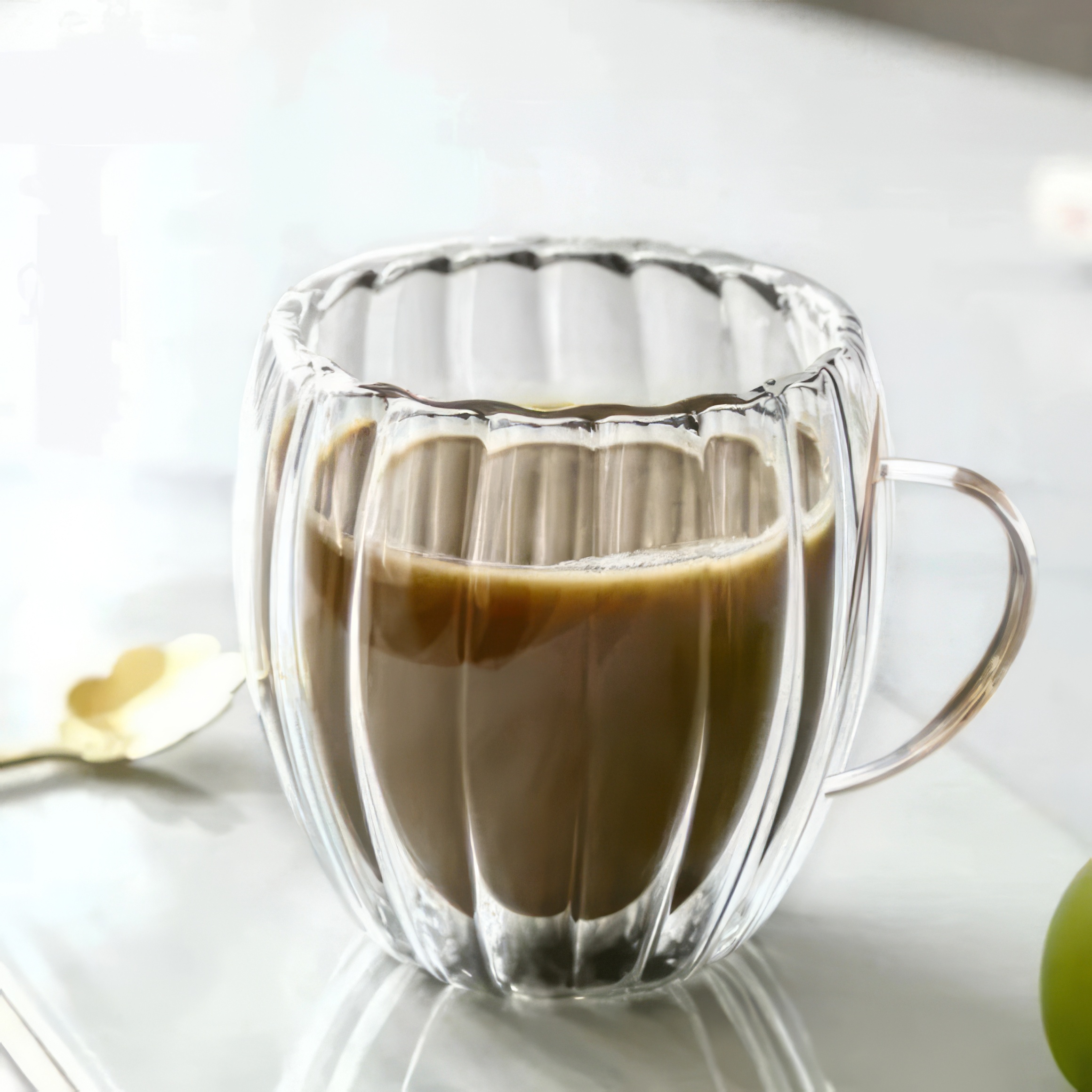 Szklanka Termiczna Ryflowana do Napojów Kawy Grube Szkło 250ml