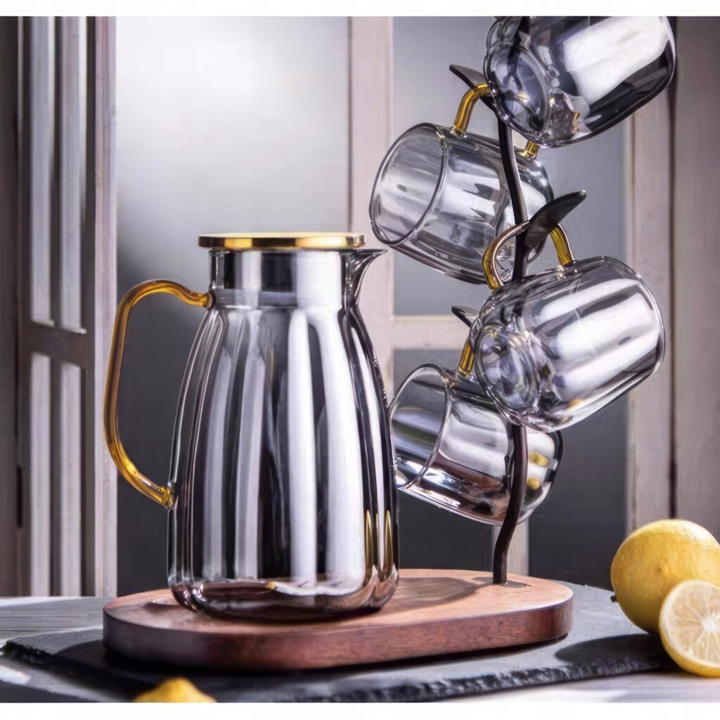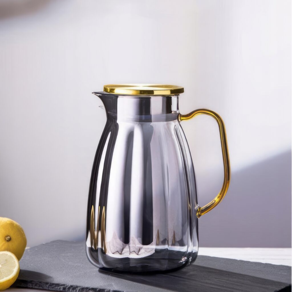 🍶 Elegancki zestaw z ryflowanym dzbankiem i złotą pokrywką